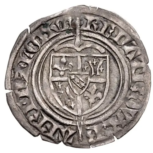 | Aversbeschreibung | Shield with quartered arms of Anjou-Bar over a downward pointing sword. |