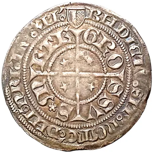 | Obverse lettering | BNDICTV ⸰ SIT ⸰ NOME`⸰ DNI` ⸰ NRI` ⸰ IHV`⸰ XPI`⸰ GROSSVS ⋆ METE (Translation: Blessed be the name of our Lord Jesus-Christ. Groschen of Metz.) |
