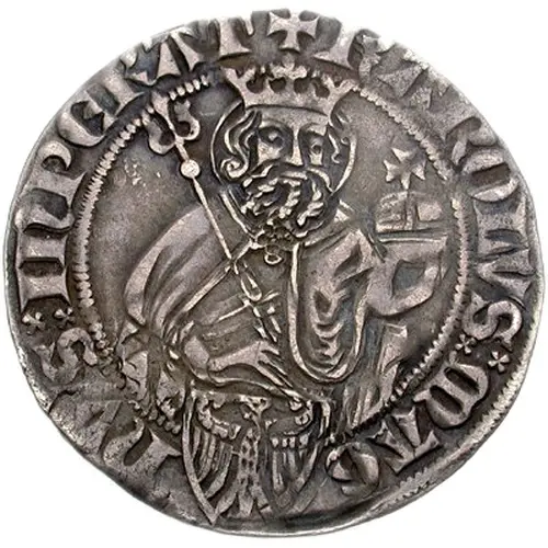 | Obverse description | Crowned facing half-length figure of Charlemagne, holding tridentine scepter in right hand and imperial orb in left; imperial coat-of-arms below. |