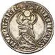 | Opis awersu | Tilted shield with arms of Bar dividing legend, below a helmet with two horns and feathered decoration. |