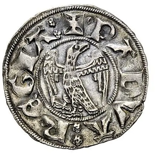 | Beschrijving keerzijde | Long cross pattée dividing legend and inner reeded circle. Legend ends with small shield of Pfannberg flanked by trefoils. |