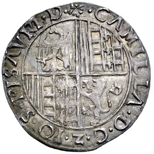 ✷ CAMILLA · D · G · Z · IO · S · PISAVRI · D · (Translation: Camille, by God`s grace, and Giovanni Sforza, Lord of Pesaro) |