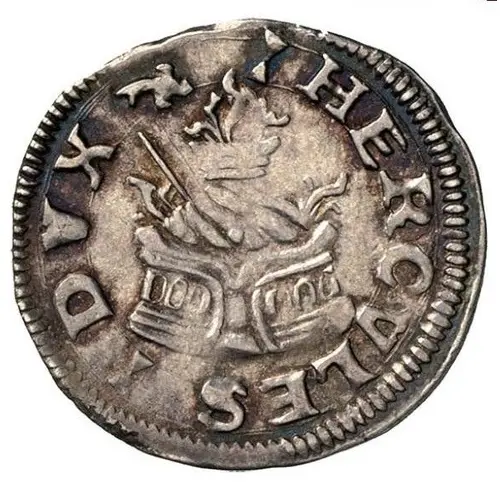 HERCVLES DVX (punctuation by trefoils) (Translation: Ercole, Duke) |