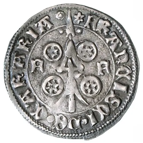 | Mô tả mặt trước | Carrara family arms (two carts) divides two gothic letters F. |