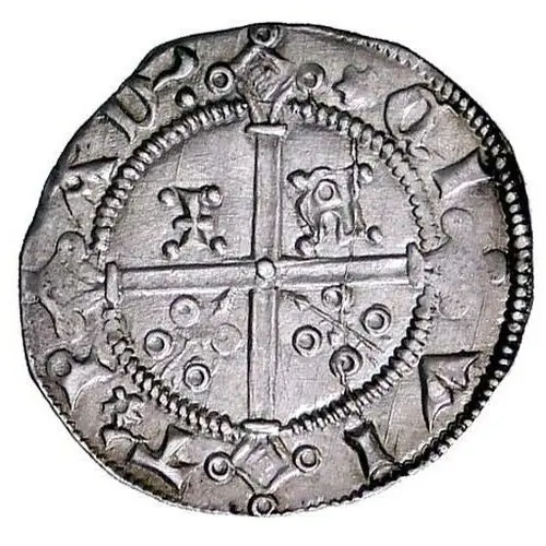 | Ön yüz açıklaması | Long voided cross with diamond-shaped tips decorated with annulets, dividing leged and inner reeded circle. Abbreviation of Lord`s name in quarters 1 and 2, Carrara arms in quarters 3 and 4. |