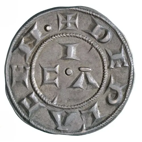 | Obverse description | In center, three letters around a central dot, which complete the outer legend. Reeded inner circle with two small inward pointing wedges. |