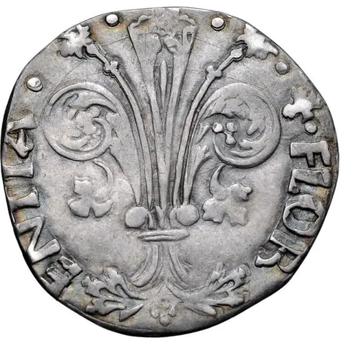 | 背面描述 | Standing, facing figure of Saint John the Baptist with beaded halo, holding a crucifix tipped staff in his left hand, right arm extended and holding a gospel. Banner with inscription behind him at left. Mintmaster`s mark (sometimes plus initial) at about 10:00-11:00 |