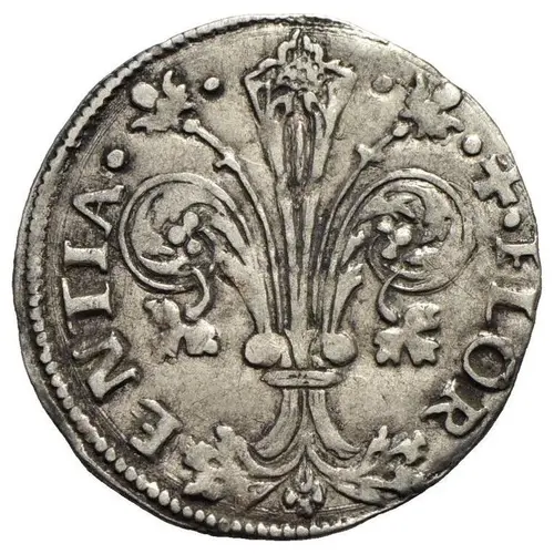 | Description de l’avers | Ornate lily of Florence divides legend. |