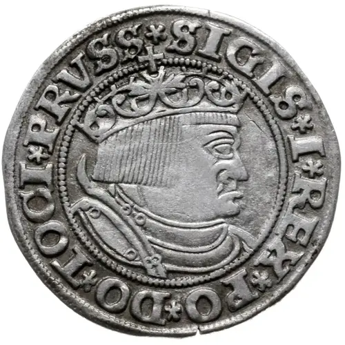 | 裏面の銘文 | *GROSS* COMV* TERR* PRVSS* 1532 (Translation: SIGISMUNDUS PRIMO REX POLONIÆ DOMINUS TOTIUS PRUSSIÆ Sigismund the first, king of Poland, Lord of the entire Prussia) |