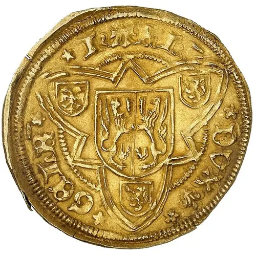 | Obverse description | Four arms in pointy trilobe (Gelderland/Julich in center), legend surrounding in three parts. |