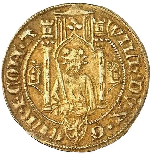 | Descripción del anverso | Mid-length figure of Duke William wearing a crown of roses and holding a sword, in a gothic portico. Below him, shield with arms of Gelre. |