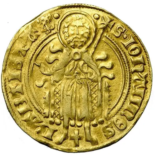 | Obverse description | Saint John the Baptist en face dressed in angora coat, halo around his head, staff with (Guelder) cross in his hand and Christian cross between feet. The lion in the circumscript as mint mark. |
