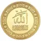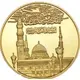 Obverse description Arabic calligraphy above a picture of the mosque of the Prophet in Medina.