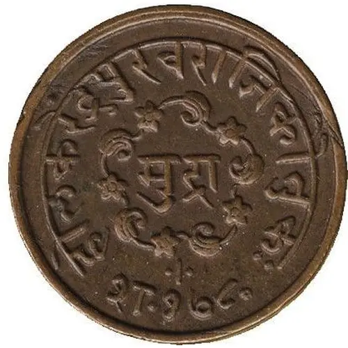 Half Rupee - Tukoji Rao II Copper Mudra Half Rupee Trial