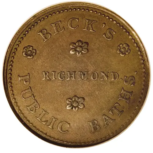 | Obverse lettering | Beck`s Public Baths Richmond |