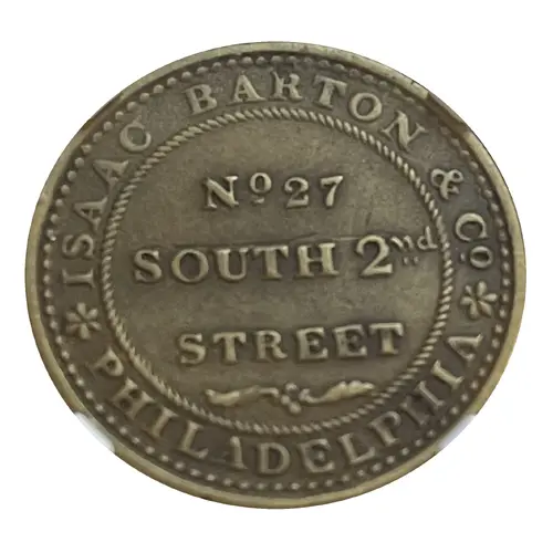 | Obverse lettering | *ISAAC BARTON & Co*/No 27/SOUTH 2nd/STREET/(ornament)/PHILADELPHIA |