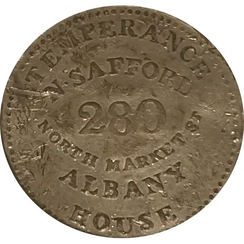 | Obverse lettering | TEMPERANCE HOUSE N. SAFFORD 280 NORTH MARKET ST ALBANY |
