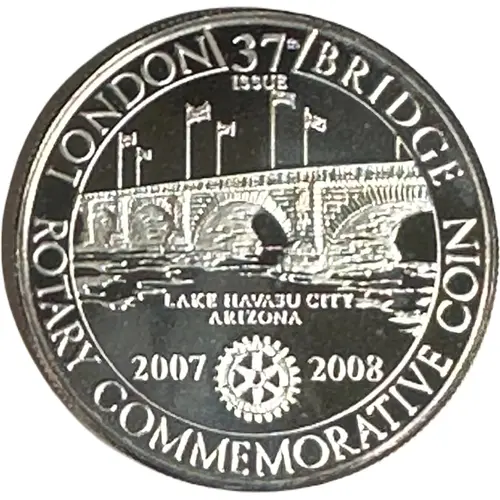 | Obverse lettering | LONDON BRIDGE 37th ISSUE LAKE HAVASU CITY ARIZONA 2007 2008 ROTARY INTERNATIONAL ROTARY COMMEMORATIVE COIN |