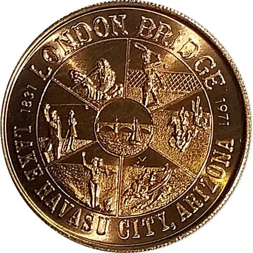 | 裏面の銘文 | LONDON BRIDGE ROTARY CLUB ROTARY INTERNATIONAL SERVICE ABOVE SELF THIS COIN IS GOOD FOR ONE DOLLAR IN TRADE AT COOPERATING BUSINESSES IN LAKE HAVASU CITY THROUGH OCTOBER 1979 HAVASU DOLLAR |