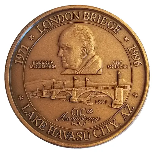 | Надписи аверса | LONDON BRIDGE 1971 1996 ROBERT P. McCULLOCH CITY FOUNDER 1831 25th Anniversary LAKE HAVASU CITY, AZ |