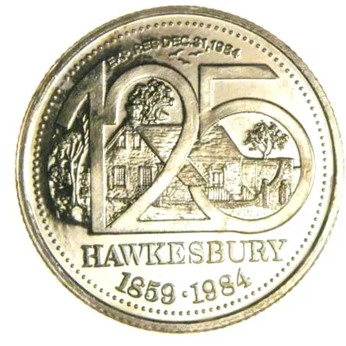 | 背面铭文 | HAWKESBURY DOLLAR 1859 1984 VAILLANT ET VEILLANT 125ieme ANNIVERSAIRE · 125th ANNIVERSARY |