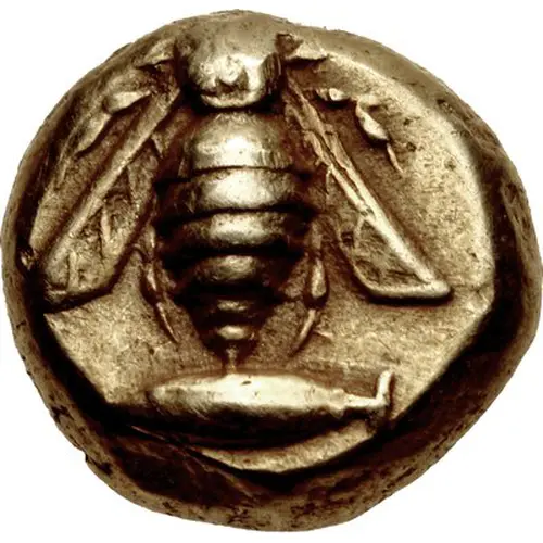| Obverse description | Bee with straight wings, seen from above. Under it a tunny facing left. |