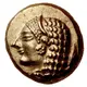 | Obverse description | Archaic head of female left, wearing stephanos and earring. To right, seal downward |