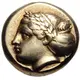 | Obverse description | Laureate female head facing left, hair in sakkos. Below, a small inverted seal facing right |
