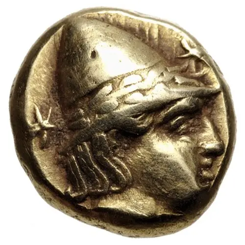 | Obverse description | Head of Kabeiros right, wearing wreathed cap and two stars flanking. |