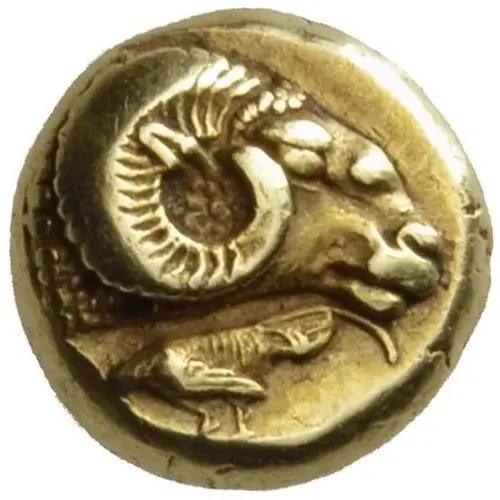 | Obverse description | Head of a ram to right and below, rooster feeding to left. |