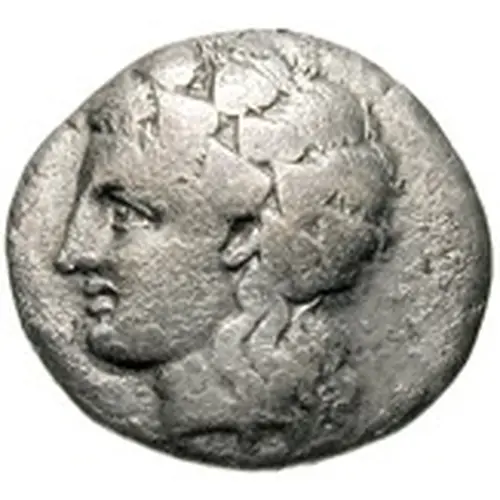 Beschrijving voorzijde Wreathed head of young Dionysos left
