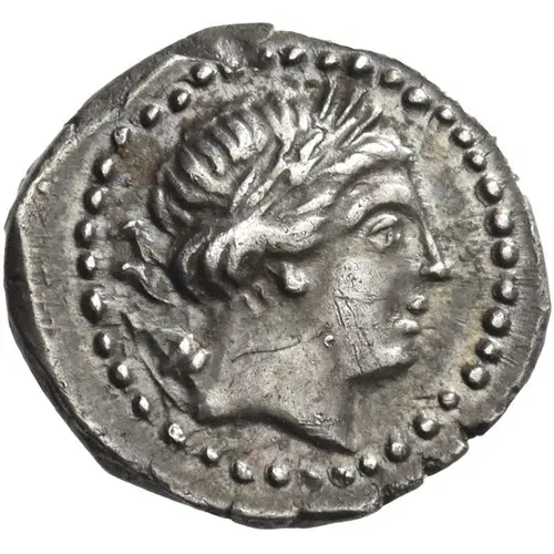 Obverse description Laureate head of Artemis right, bow and quiver over her left shoulder.