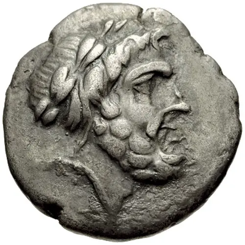 | Описание реверса | Monogram of the Achaian League. Above it, facing head of Helios and all within laurel wreath |