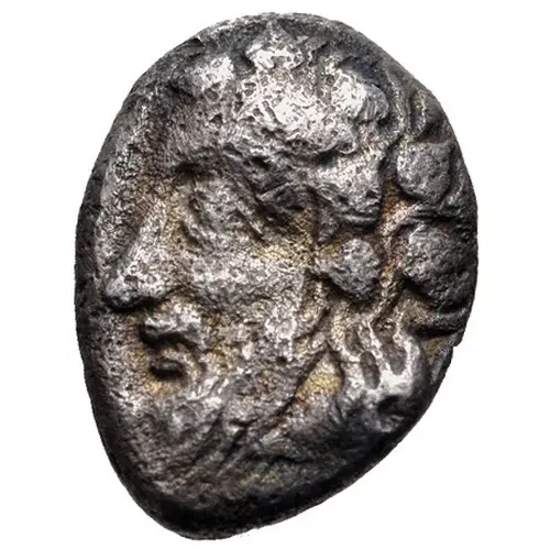 Obverse description Head of Dionysos facing left, wearing ivy wreath