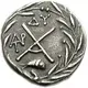 | Reversbeschreibung | AX monogram; ΔY above, monogram to left; below, fish right; all within wreath. |