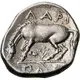 | Reverse description | Horse standing with lowered head to left, about to roll over. Beneath horse’s belly, plant, in exergue, ΠΛΕ[Ι] |