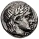 | Popis líce | Laureate head of Apollo facing right, with long hair |