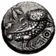 | Reversbeschreibung | Owl standing right, head facing; olive sprig and crescent behind; grape bunch above tail. |