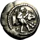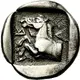 | Popis rubu | Forepart of bridled horse to left and behind it a trident. All within incuse square |
