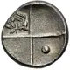 | Descrição do reverso | Quadripartite incuse square with two raised and two sunken squares; pellet in one quarter, wreath in another. |