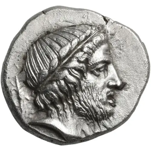 | Description de l’avers | Laureate head of Zeus to right, with a short, neat beard. Behind head, thunderbolt |