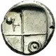 | Reverse description | Quadripartite incuse square with alternating raised and sunken quarters. Pellet and monogram in one quarter and phiale in the opposite |