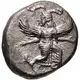 Reverse description Griffin standing facing left, raising its forepaw and in a dotted square within incuse square