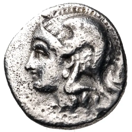 | Описание реверса | Trident head in the centre. Name of magistrate to the left and the city name to the right. All within circular maeander pattern. |