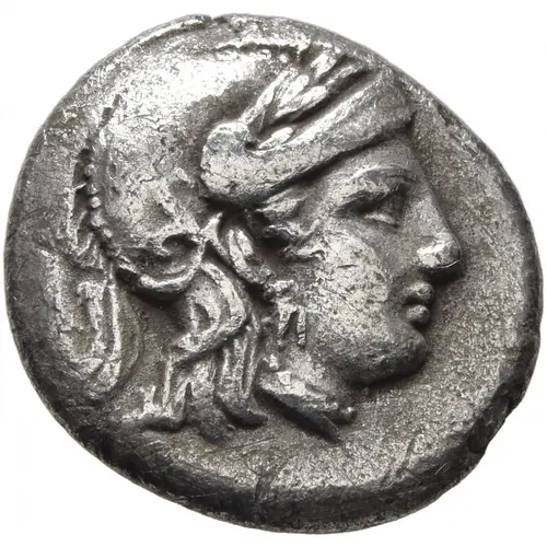 | Obverse description | Head of Athena to right with Attic helmet, decorated with laurel wreath. |