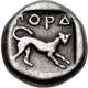 | Popis rubu | Panther standing right and city abbreviation within incuse square |