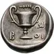 | Reverse description | Kantharos; above, club right; to right, ivy leaf; BO-I across lower field; all within concave incuse square. |