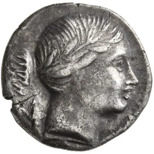 | Descrizione del dritto | Laureate head of Artemis to right, bow and quiver behind neck. |