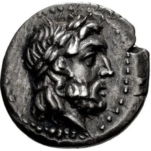 | Obverse description | Laureate head of Zeus Hamarios right. |
