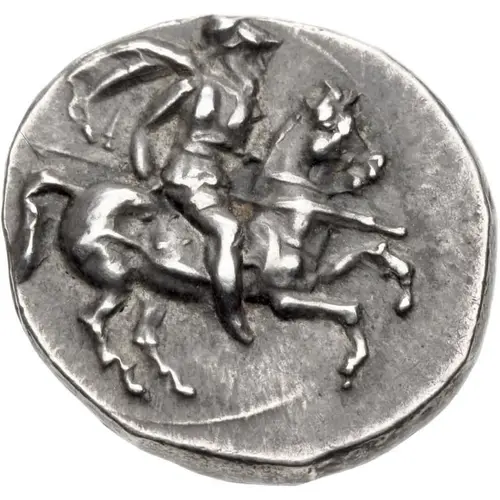| Obverse description | Warrior, wearing helmet and military attire, holding lance in right hand. |